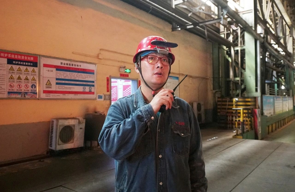 在烈焰熊熊的集团不锈钢炼钢厂转炉前,炉长刘晓彬手持对讲机,目光如炬地注视着炉内翻滚的钢水。他精准的指令穿透机器的轰鸣,指挥职工们完成一次次炉料投放。